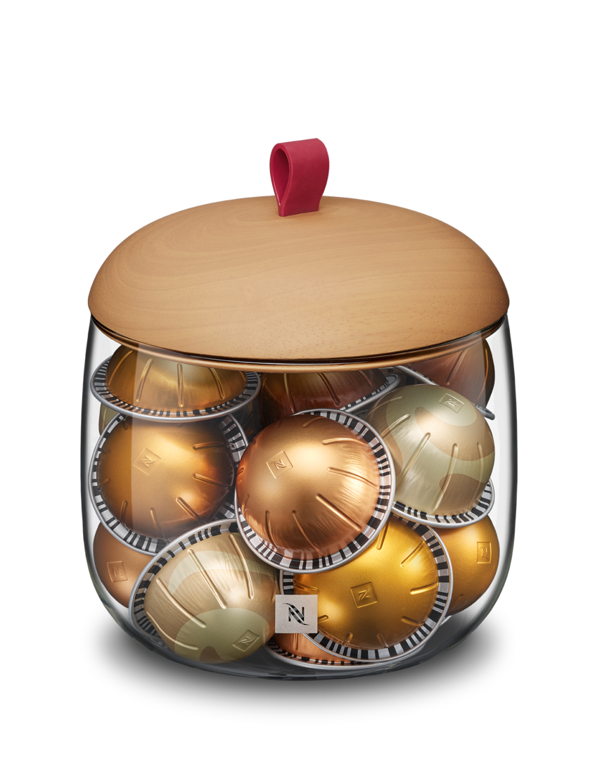 A contemporary classic, the Display Mia capsule dispenser sheds a modern glow on Italian elegance. To bring a luminous sparkle to your capsules the rounded dispenser is made of transparent glass.