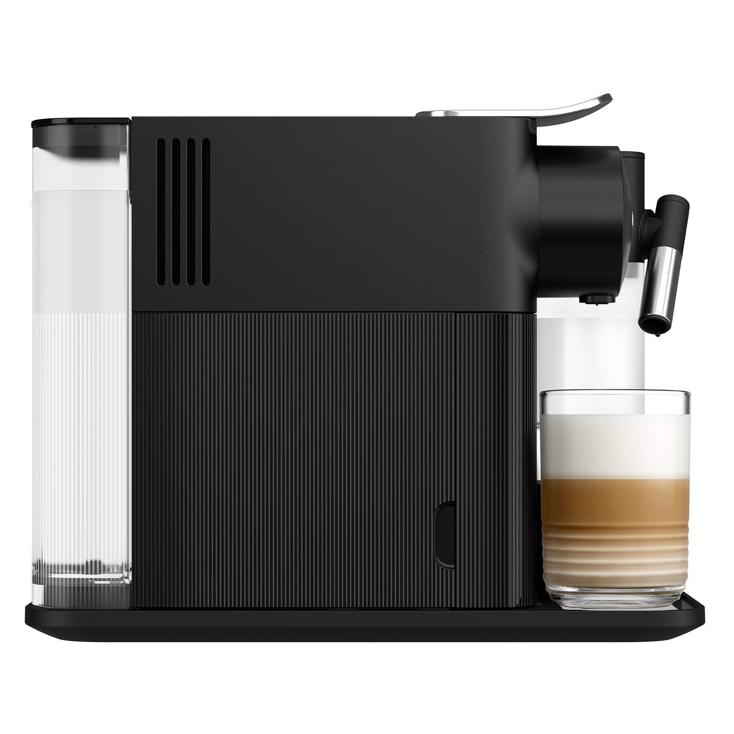 One touch, many recipes. Lattissima One Black serves cappuccinos, lattes, espresso macchiatos and more from a compact, city-smart design. A subtle gloss finish and chrome details sit easily on any counter.